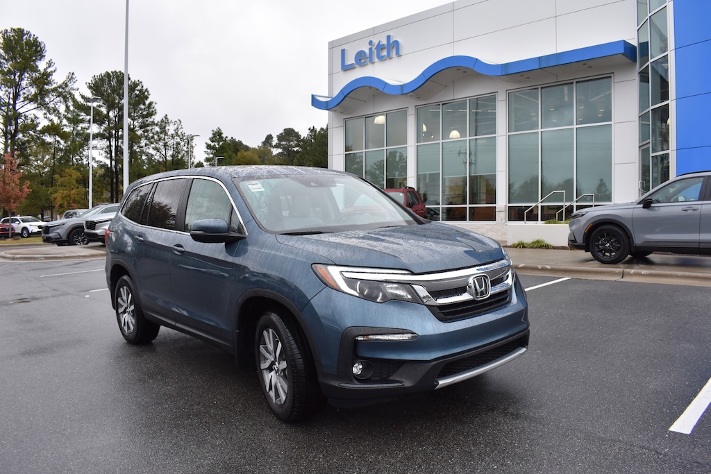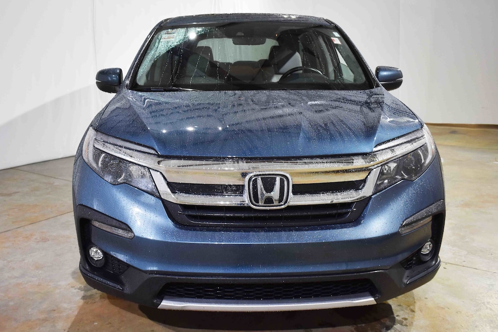Clean CARFAX. CARFAX One-Owner. Certified. Steel Sapphire Metallic 2020 Honda Pilot EX-L AWD 6-Speed Automatic 3.5L V6 24V SOHC i-VTEC 18" Machine-Finished Alloy Wheels, 3rd row seats: split-bench, 4-Wheel Disc Brakes, 4.25 Axle Ratio, 7 Speakers, A/V remote: CabinControl, ABS brakes, Air Conditioning, Alloy wheels, AM/FM radio: SiriusXM, Apple CarPlay/Android Auto, Auto High-beam Headlights, Auto-dimming Rear-View mirror, Automatic temperature control, Blind Spot Information (BSI) System warning, Brake assist, Bumpers: body-color, Delay-off headlights, Dual front impact airbags, Dual front side impact airbags, Electronic Stability Control, Emergency communication system: HondaLink Assist, Exterior Parking Camera Rear, Forward collision: Collision Mitigation Braking System (CMBS) + FCW mitigation, Four wheel independent suspension, Front anti-roll bar, Front dual zone A/C, Front fog lights, Fully automatic headlights, Garage door transmitter: HomeLink, Heated door mirrors, Heated Front Bucket Seats, Heated front seats, Illuminated entry, Lane departure: Lane Keeping Assist System (LKAS) active, Leather Seat Trim, Leather Shift Knob, Low tire pressure warning, Memory seat, Occupant sensing airbag, Outside temperature display, Overhead airbag, Overhead console, Panic alarm, Power driver seat, Power Liftgate, Power moonroof, Power passenger seat, Power steering, Power windows, Radio data system, Radio: 215-Watt Audio System, Rear air conditioning, Rear anti-roll bar, Rear window defroster, Rear window wiper, Reclining 3rd row seat, Remote keyless entry, Security system, Speed control, Speed-sensing steering, Speed-Sensitive Wipers, Split folding rear seat, Spoiler, Steering wheel mounted audio controls, Tachometer, Telescoping steering wheel, Tilt steering wheel, Traction control, Trip computer, Turn signal indicator mirrors, Variably intermittent wipers.