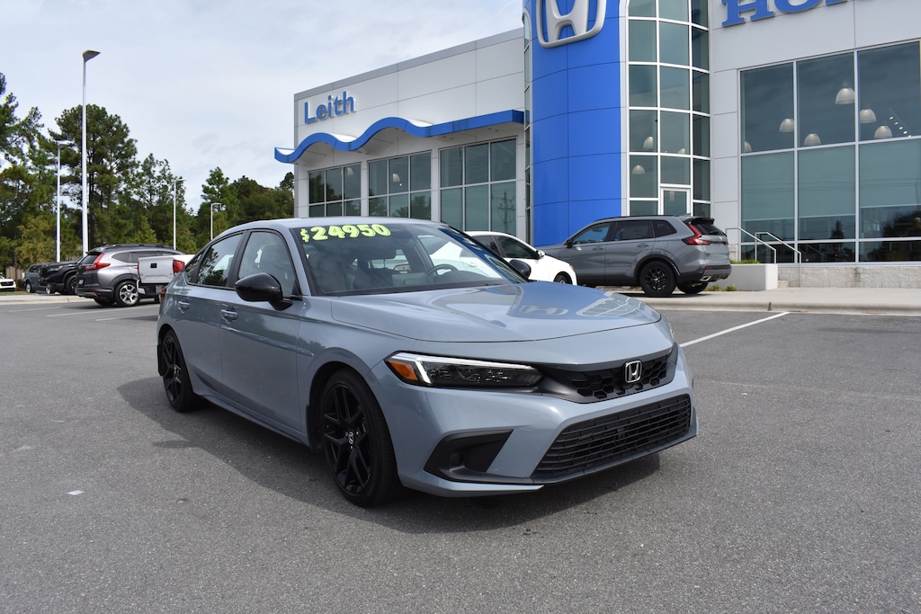 CARFAX One-Owner. Sonic Gray Pearl 2024 Honda Civic Sport FWD CVT 2.0L I4 DOHC 16V 18" Alloy Wheels, 4-Wheel Disc Brakes, 8 Speakers, ABS brakes, Adaptive Cruise Control: Adaptive Cruise Control (ACC) with Low-Speed Follow, Air Conditioning, Alloy wheels, AM/FM radio, Apple CarPlay/Android Auto, Auto High-beam Headlights, Automatic temperature control, Brake assist, Bumpers: body-color, Cloth/Leatherette Seating Surfaces, Delay-off headlights, Dual front impact airbags, Dual front side impact airbags, Electronic Stability Control, Emergency communication system: HondaLink, Exterior Parking Camera Rear, Four wheel independent suspension, Front anti-roll bar, Fully automatic headlights, Illuminated entry, Knee airbag, Lane departure: Lane Keeping Assist System (LKAS) active, Leather Shift Knob, Leather steering wheel, Low tire pressure warning, Occupant sensing airbag, Outside temperature display, Overhead airbag, Panic alarm, Power door mirrors, Power steering, Power windows, Radio data system, Radio: 180-Watt Audio System, Rear anti-roll bar, Rear side impact airbag, Rear window defroster, Rear window wiper, Remote keyless entry, Security system, Speed control, Speed-sensing steering, Split folding rear seat, Steering wheel mounted audio controls, Tachometer, Telescoping steering wheel, Tilt steering wheel, Traction control, Trip computer, Voltmeter.