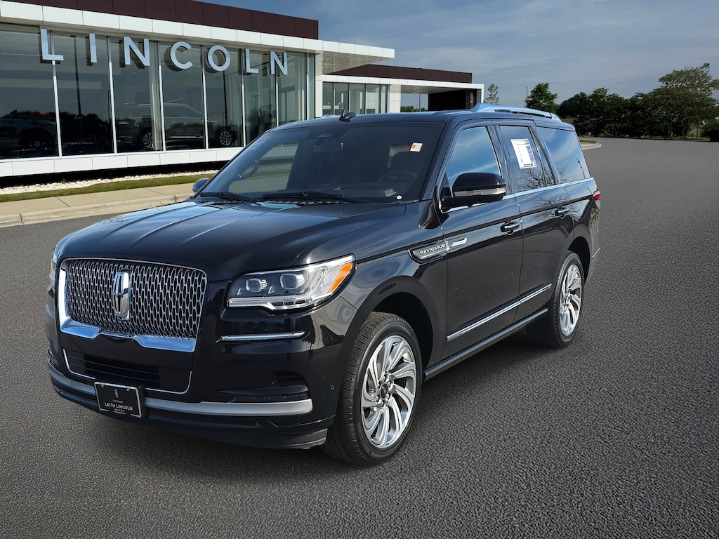 Certified. Black Metallic 2024 Lincoln Navigator Reserve 4WD 10-Speed Automatic V6 4WD, Black Onyx Leather, Adaptive suspension, Alloy wheels, Apple CarPlay/Android Auto, Auto High-beam Headlights, Equipment Group 200A Reserve, Exterior Parking Camera Rear, Front fog lights, Genuine wood dashboard insert, Genuine wood door panel insert, Heads-Up Display, Memory seat, Navigation system: Connected Navigation (1-year trial), Power driver seat, Power Liftgate, Power moonroof: Panoramic Vista Roof, Prem Lthr Auto Htd/Ventiltd Perfect Position Seats, Radio: Revel Audio System w/Satelllite/AM/FM/HD, Rain sensing wipers, SiriusXM w/360L, SYNC 4 Communications & Entertainment System, Voice-Activated Touchscreen Navigation System, Wheels: 22" Bright Machined Aluminum.