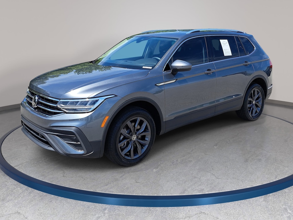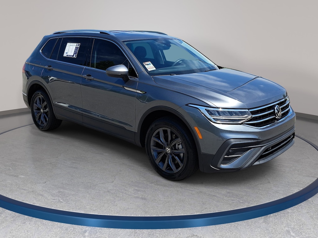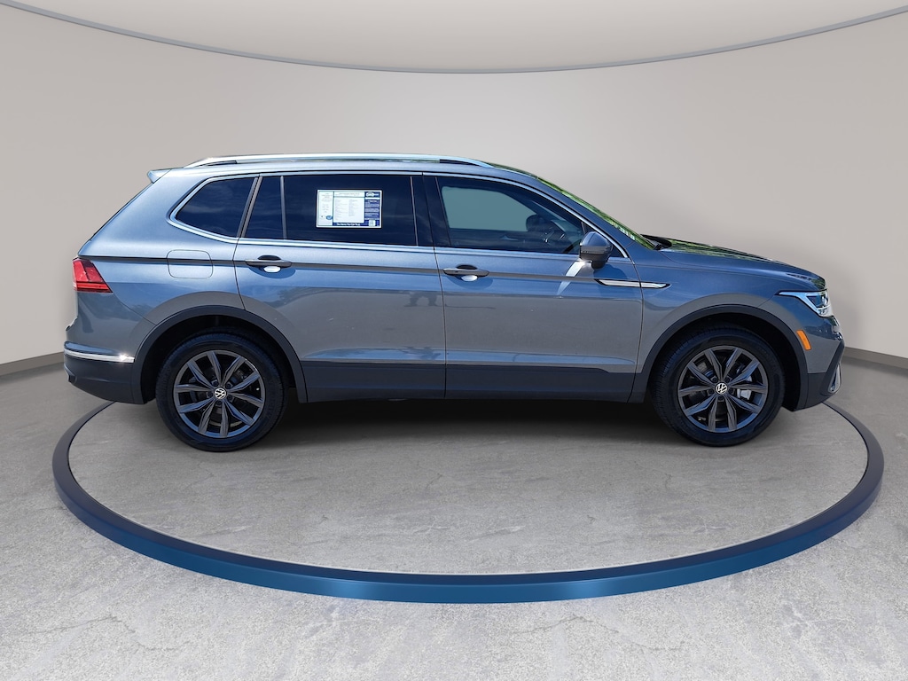 Platinum Gray Metallic 2023 Volkswagen Tiguan 2.0T SE FWD 8-Speed Automatic with Tiptronic 2.0L TSI DOHC 3.33 Axle Ratio, 3rd row seats: bench, 4-Wheel Independent Suspension, AM/FM radio: SiriusXM with 360L, Automatic temperature control, Brake assist, Credit - Power Rear Liftgate Removed, Electronic Stability Control, Exterior Parking Camera Rear, Front dual zone A/C, Fully automatic headlights, Heated Front Comfort Seats, Perforated V-Tex Leatherette Seating Surfaces, Power driver seat, Radio: MIB3 Composition Media AM/FM/HD, Rain sensing wipers, Rear window wiper, Remote keyless entry, Speed-sensing steering, Split folding rear seat, Steering wheel mounted audio controls, Traction control, Wheels: 18" Dark Graphite Painted 10-Spoke Alloy.
