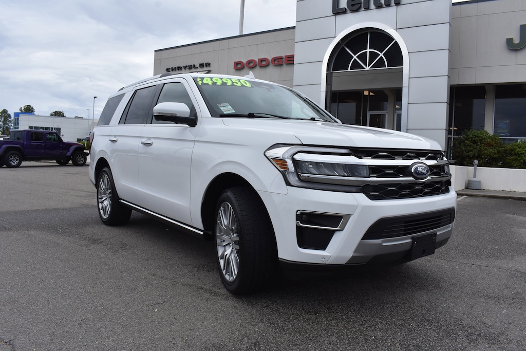 Clean CARFAX. CARFAX One-Owner. Oxford White 2024 Ford Expedition Limited RWD 10-Speed Automatic EcoBoost 3.5L V6 GTDi DOHC 24V Twin Turbocharged 12 Speakers, 2nd Row Power-Folding 40/20/40 Leather Bench Seat, 3.31 Axle Ratio, 360-Degree Camera w/Split View, 3rd row seats: split-bench, 4-Wheel Disc Brakes, ABS brakes, Adjustable pedals, Air Conditioning, Alloy wheels, AM/FM radio: SiriusXM with 360L, Auto High-beam Headlights, Auto-dimming door mirrors, Auto-dimming Rear-View mirror, Automatic temperature control, Brake assist, Bumpers: body-color, Compass, Connected Navigation, Delay-off headlights, Dual front impact airbags, Dual front side impact airbags, Ebony Black Mesh Grille, Electronic Stability Control, Emergency communication system: SYNC 4 911 Assist, Equipment Group 302A High Package, Exterior Parking Camera Rear, Four wheel independent suspension, Front anti-roll bar, Front dual zone A/C, Front fog lights, Fully automatic headlights, Garage door transmitter, Heated & Ventilated Leather Front Captain's Chairs, Heated door mirrors, Heated front seats, Heated rear seats, Heated steering wheel, Heavy-Duty Independent Suspension, Illuminated entry, Leather steering wheel, Low tire pressure warning, Magnetic-Painted Power Deployable Running Boards, Memory seat, Navigation system: Connected Navigation, Occupant sensing airbag, Overhead airbag, Overhead console, Panic alarm, Pedal memory, Power door mirrors, Power driver seat, Power Liftgate, Power moonroof, Power passenger seat, Power steering, Power windows, Power-Folding Sideview Mirrors w/Autofold, Radio data system, Radio: B&O Sound System by Bang & Olufsen, Rain sensing wipers, Rear air conditioning, Rear anti-roll bar, Rear window defroster, Rear window wiper, Reclining 3rd row seat, Remote keyless entry, Reverse Brake Assist, Security system, SiriusXM w/360L, Speed control, Speed-sensing steering, Speed-Sensitive Wipers, Split folding rear seat, Spoiler, Steering wheel memory, Steering wheel mounted audio controls, SYNC 4 w/Enhanced Voice Recognition, Tachometer, Telescoping steering wheel, Tilt steering wheel, Traction control, Trip computer, Turn signal indicator mirrors, Variably intermittent wipers, Ventilated front seats, Voltmeter, Wheels: 22" 12-Spoke Polished Aluminum.