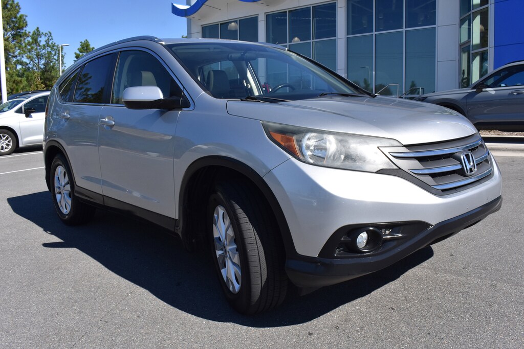 Clean CARFAX. Alabaster Silver Metallic 2012 Honda CR-V EX-L AWD 5-Speed Automatic 2.4L I4 DOHC 16V i-VTEC 17" x 6.5" Alloy Wheels, 4-Wheel Disc Brakes, 4.44 Axle Ratio, 7 Speakers, ABS brakes, Air Conditioning, Alloy wheels, AM/FM radio: XM, Automatic temperature control, Brake assist, Bumpers: body-color, CD player, Compass, Delay-off headlights, Dual front impact airbags, Dual front side impact airbags, Electronic Stability Control, Exterior Parking Camera Rear, Four wheel independent suspension, Front anti-roll bar, Front dual zone A/C, Front fog lights, Heated door mirrors, Heated front seats, Heated Reclining Front Bucket Seats, Illuminated entry, Leather Shift Knob, Leather-Trimmed Seats, Low tire pressure warning, Occupant sensing airbag, Outside temperature display, Overhead airbag, Overhead console, Panic alarm, Passenger seat mounted armrest, Power door mirrors, Power driver seat, Power moonroof, Power steering, Power windows, Radio data system, Radio: AM/FM/CD Audio System w/XM Radio, Rear anti-roll bar, Rear seat center armrest, Rear window defroster, Rear window wiper, Remote keyless entry, Roof rack: rails only, Security system, Speed control, Speed-sensing steering, Speed-Sensitive Wipers, Split folding rear seat, Steering wheel mounted audio controls, Tachometer, Telescoping steering wheel, Tilt steering wheel, Traction control, Trip computer, Variably intermittent wipers.