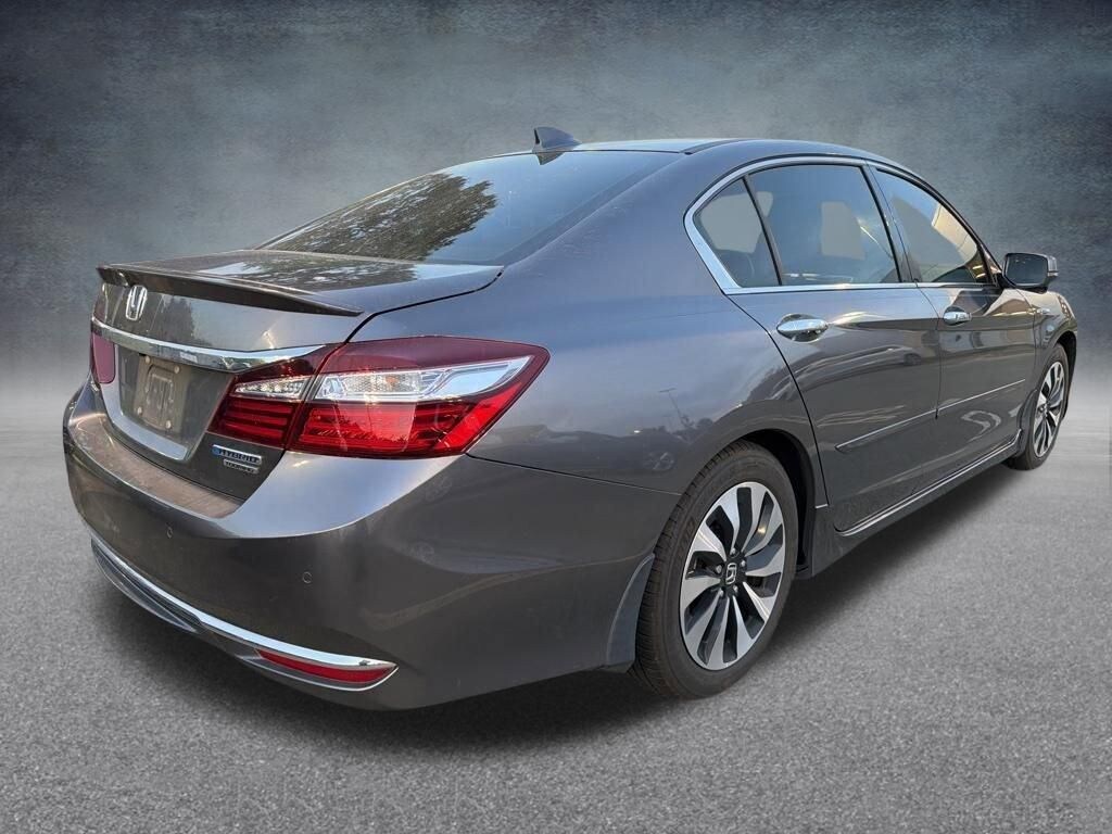 Modern Steel Metallic 2017 Honda Accord Hybrid Touring eCVT 2.0L 4-Cylinder DOHC 16V i-VTEC FWD CARFAX One-Owner. Clean CARFAX. Features, 2.0L 4-Cylinder DOHC 16V i-VTEC, Apple CarPlay/Android Auto, Automatic temperature control, Brake assist, Electronic Stability Control, Exterior Parking Camera Rear, Fully automatic headlights, Heated Front Bucket Seats, Lane Departure Warning System, Memory seat, Power moonroof, Radio: 360-Watt AM/FM/HD Premium Audio System, Rain sensing wipers.