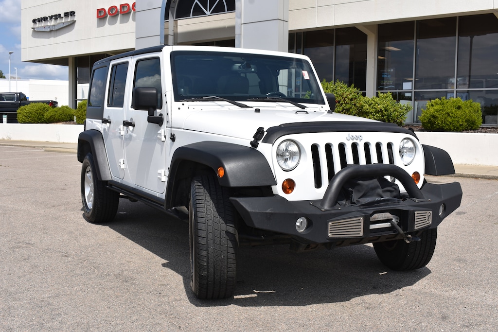 Clean CARFAX. Bright White Clearcoat 2013 Jeep Wrangler Unlimited Sport 4WD 5-Speed Automatic 3.6L V6 24V VVT 17" x 7.5" Aluminum Wheels, 3.21 Rear Axle Ratio, 4-Wheel Disc Brakes, 6 Speakers, ABS brakes, Air Conditioning, AM/FM radio, Auto-Dimming Mirror w/Reading Lamp, Black 3-Piece Hard Top, Brake assist, CD player, Class II Receiver Hitch, Cloth Bucket Seats, Deep Tint Sunscreen Windows, Dual front impact airbags, Electronic Stability Control, Freedom Panel Storage Bag, Front 1-Touch Down Power Windows, Front anti-roll bar, Front Center Armrest w/Storage, Front fog lights, Integrated roll-over protection, Low tire pressure warning, Normal Duty Suspension, Occupant sensing airbag, Outside temperature display, Power Heated Mirrors, Power Locks, Power steering, Quick Order Package 24S, Radio: Uconnect 130 AM/FM/CD/MP3, Rear anti-roll bar, Rear Window Defroster, Rear Window Wiper/Washer, Remote Keyless Entry, Security Alarm, Speed control, Split folding rear seat, Steering wheel mounted audio controls, Sunrider Soft Top, Tachometer, Tilt steering wheel, Tinted Rear Quarter & Liftgate Windows, Traction control, Trailer Tow Group, Trailer Tow w/4-Pin Connector Wiring, Trip computer, Variably intermittent wipers.