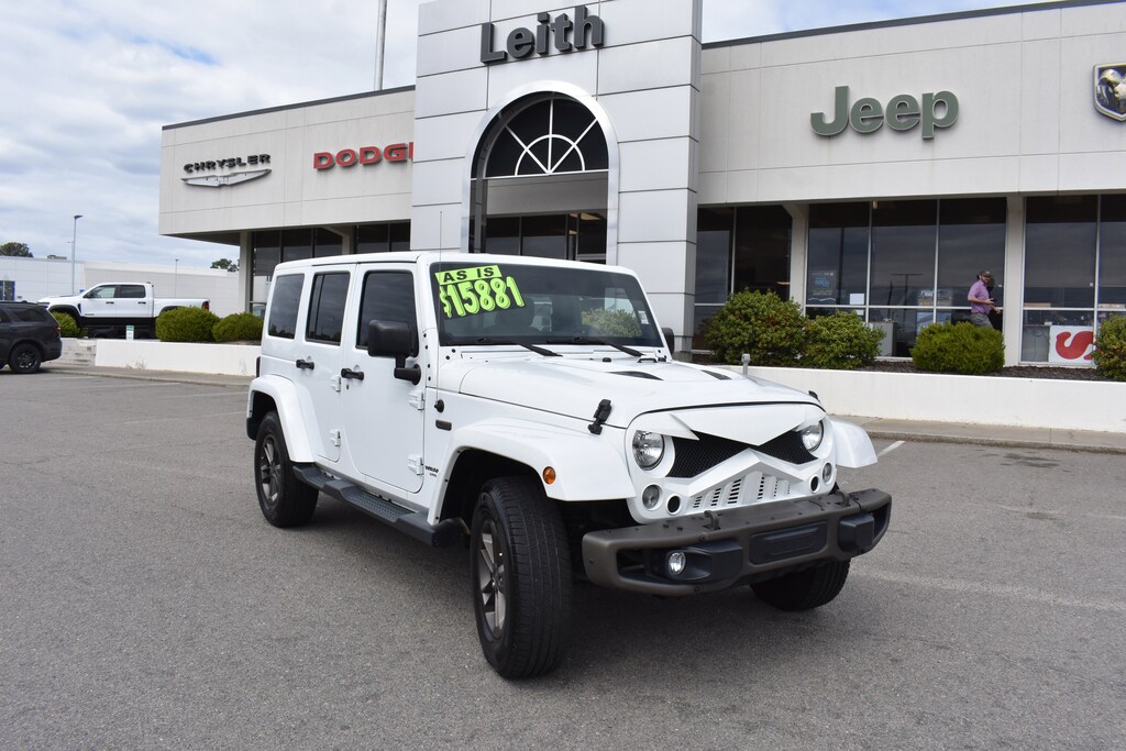 Clean CARFAX. Bright White Clearcoat 2016 Jeep Wrangler Unlimited Sahara 4WD 5-Speed Automatic 3.6L V6 24V VVT 2 Front & 1 Rear Bronze Tow Hook, 3.73 Rear Axle Ratio, 4-Wheel Disc Brakes, 40GB Hard Drive w/28GB Available, 5-Year SiriusXM Travel Link Service, 6.5" Touchscreen Display, 75th Anniversary Badge, 8 Speakers, ABS brakes, Air Conditioning, Air Conditioning w/Auto Temperature Control, Air Filtering, Alpine 9-Speaker w/All Weather Subwoofer, AM/FM radio: SiriusXM, Anti-Spin Differential Rear Axle, Audio Jack Input for Mobile Devices, Auto-dimming Rear-View mirror, Black 3-Piece Hard Top, Body Color 3-Piece Hard Top, Body Color Grille w/Bronze Accent, Brake assist, Bronze Jeep Grille Badge, Bronze Trail Rated Badge, CD player, Chrome/Leather Wrapped Shift Knob, Class II Receiver Hitch, Cloth Seats w/Adjustable Head Restraints, Compass, Connectivity Group, Dual front impact airbags, Dual Top Group, Electronic Stability Control, Freedom Panel Storage Bag, Front anti-roll bar, Front Center Armrest w/Storage, Front fog lights, Fully automatic headlights, GPS Navigation, Heated door mirrors, Heated Front Seats, Heavy Duty Suspension w/Gas Shocks, Hood w/Power Dome, Humidity Sensor, Illuminated entry, Integrated roll-over protection, Jeep 75th Anniversary Package, Leather Seat w/Cloth (Ombre Mesh), Leather steering wheel, Leather Wrapped Steering Wheel, Low Gloss Black Wrangler Decal, Low tire pressure warning, Max Tow Package, MOPAR Slush Mats, Moroccan Sun Instrument Panel Bezel, Moroccan Sun Interior Accents, Occupant sensing airbag, Outside temperature display, Painted Front Bumper, Painted Rear Bumper, Panic alarm, Power door mirrors, Power steering, Power windows, Premium Black Sunrider Soft Top, Quick Order Package 24H 75th Anniversary, Radio data system, Radio: 130, Radio: 430, Radio: 430 (DISC), Radio: 430N, Rear anti-roll bar, Rear Window Defroster, Rear Window Wiper/Washer, Remote keyless entry, Remote Start System, Remote USB Port, Security system, SiriusXM Travel Link, Speed control, Split folding rear seat, Steering wheel mounted audio controls, Tachometer, Tilt steering wheel, Tire Pressure Monitoring Display, Traction control, Trailer Tow w/4-Pin Connector Wiring, Trip computer, Uconnect Voice Command w/Bluetooth, Variably intermittent wipers, Vehicle Information Center, Wheels: 17 x 7.5 Aluminum Bronze.
