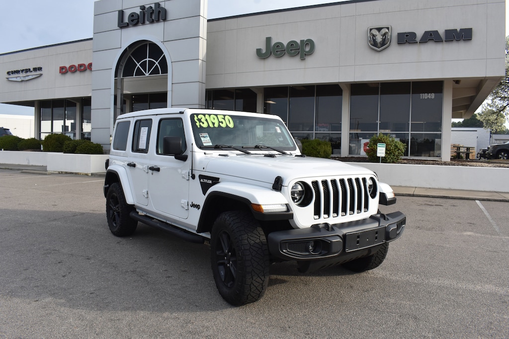 Bright White Clearcoat 2019 Jeep Wrangler Unlimited Sahara Altitude 4WD 8-Speed Automatic 3.6L V6 24V VVT 1-Year SiriusXM Guardian Trial, 3.45 Rear Axle Ratio, 4-Wheel Disc Brakes, 4G LTE Wi-Fi Hot Spot, 5-Year SiriusXM Traffic Service, 5-Year SiriusXM Travel Link Service, 8 Speakers, 8.4" Radio & Premium Audio Group, 8.4" Touchscreen Display, ABS brakes, Air Conditioning, Alloy wheels, Altitude Package, AM/FM radio: SiriusXM, Apple CarPlay/Android Auto, Auto-Dimming Rear-View Mirror, Automatic temperature control, Black Interior Accents, Body Color 3-Piece Hard Top, Body Color Grille w/Gloss Black, Brake assist, Cloth Low-Back Bucket Seats, Cold Weather Group, Compass, Daytime Running Lamps LED Accents, Delay-off headlights, Dual front impact airbags, Dual front side impact airbags, Electronic Stability Control, Emergency/Assistance Call, For Details, Visit DriveUconnect.ca, Front anti-roll bar, Front dual zone A/C, Front fog lights, Front LED Fog Lamps, Fully automatic headlights, Garage door transmitter, Gloss Black Instrument Panel Bezels, Gloss Black Jeep Badge, GPS Navigation, HD Radio, Heated door mirrors, Heated Front Seats, Heated Steering Wheel, Heavy Duty Suspension w/Gas Shocks, Illuminated entry, Integrated roll-over protection, Leather steering wheel, Leather Trimmed Bucket Seats, Leather Wrapped Park Brake Handle, Leather Wrapped Shift Knob, LED Lighting Group, LED Reflector Headlamps, LED Taillamps, Low tire pressure warning, Mold In Color Bumper w/Gloss Black, MOPAR Hardtop Headliner, Non-Lock Fuel Cap w/o Discriminator, Occupant sensing airbag, Outside temperature display, Panic alarm, ParkView Rear Back-Up Camera, Power door mirrors, Power steering, Power windows, Quick Order Package 24L Altitude, Radio data system, Radio: Uconnect 4 Nav w/8.4" Display (DISC), Radio: Uconnect 4C Nav w/8.4" Display, Rear anti-roll bar, Remote keyless entry, Security system, SiriusXM Traffic Plus, SiriusXM Travel Link, Speed control, Split folding rear seat, Steering wheel mounted audio controls, Tachometer, Telescoping steering wheel, Tilt steering wheel, Traction control, Trip computer, Variably intermittent wipers, Voltmeter, Wheels: 18" x 7.5" Gloss Black Aluminum.