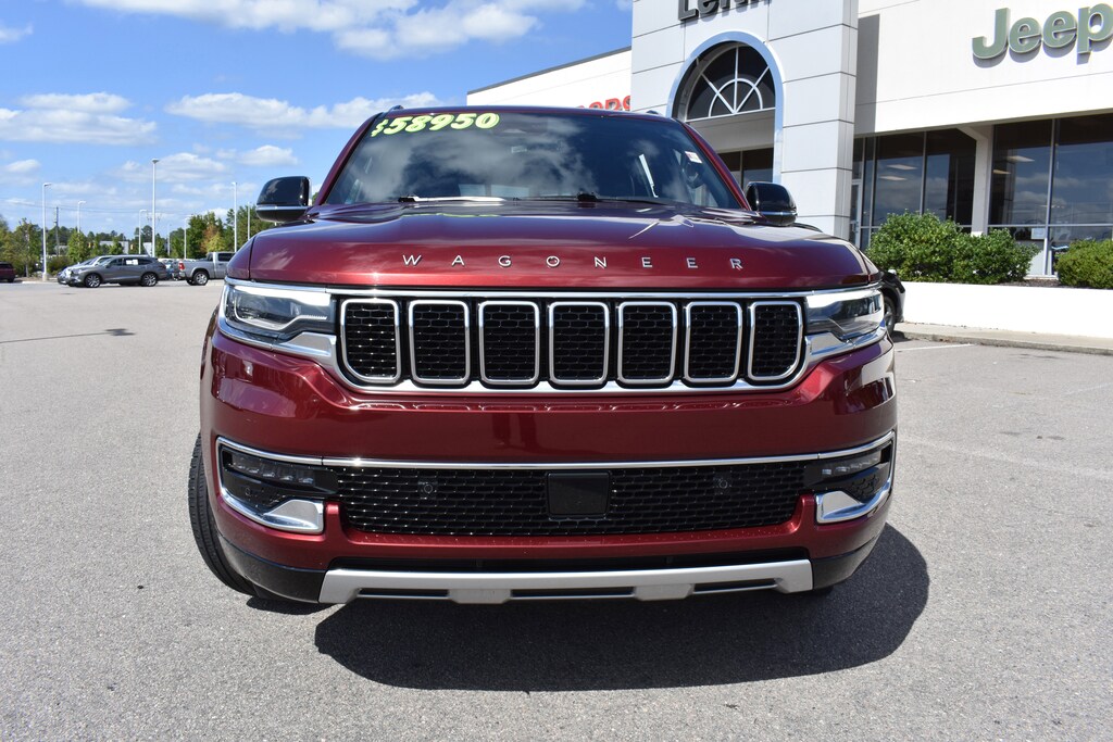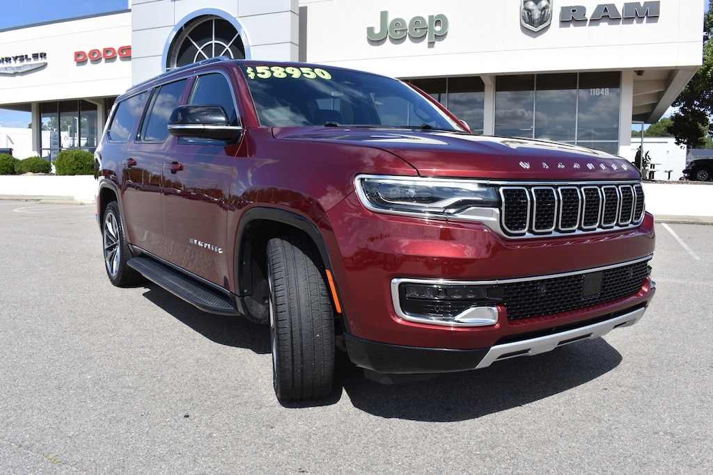 CARFAX One-Owner. Velvet Red Pearlcoat 2024 Jeep Wagoneer L Series II 4WD 8-Speed Automatic 3.0L I6 10 Speakers, 3 Panel Sunroof, 3.55 Rear Axle Ratio, 3rd row seats: bench, 4-Wheel Disc Brakes, 40/20/40 2nd Row Bench Power Tip/Slide, 8-Passenger Seating, ABS brakes, Adjustable pedals, Adjustable Roof Rail Crossbars, Air Conditioning, Alloy wheels, AM/FM radio: SiriusXM with 360L, Anti-whiplash front head restraints, Apple CarPlay/Android Auto, Audio memory, Auto-dimming door mirrors, Auto-dimming Rear-View mirror, Auto-leveling suspension, Automatic temperature control, Brake assist, Bumpers: body-color, Compass, Delay-off headlights, Driver's Seat Mounted Armrest, Dual front impact airbags, Dual front side impact airbags, Electronic Stability Control, Emergency communication system: Wagoneer Connect, Exterior Parking Camera Rear, Flexible Seating Group, Four wheel independent suspension, Front anti-roll bar, Front Center Armrest w/Storage, Front dual zone A/C, Front fog lights, Full Length Floor Console, Fully automatic headlights, Garage door transmitter, Genuine wood console insert, Genuine wood dashboard insert, Genuine wood door panel insert, Heated door mirrors, Heated front seats, Heated steering wheel, Illuminated entry, Knee airbag, Leather Trimmed Bucket Seats, Low tire pressure warning, Memory seat, Navigation System, Normal Duty Suspension, Occupant sensing airbag, Outside temperature display, Overhead airbag, Panic alarm, Pedal memory, Power adjustable front head restraints, Power door mirrors, Power driver seat, Power Liftgate, Power passenger seat, Power steering, Power windows, Premium Group I, Quick Order Package 25J, Radio data system, Radio: Uconnect 5 Nav w/10.1" Display, Rain sensing wipers, Rear air conditioning, Rear anti-roll bar, Rear window defroster, Rear window wiper, Reclining 3rd row seat, Remote keyless entry, Reversible Carpet/Vinyl Cargo Mat, Security system, Speed control, Speed-sensing steering, Split folding rear seat, Steering wheel memory, Steering wheel mounted audio controls, Tachometer, Telescoping steering wheel, Tilt steering wheel, Traction control, Trip computer, Turn signal indicator mirrors, Variably intermittent wipers, Ventilated front seats, Voltmeter, Wheels: 22" x 9.0" Premium 3 Aluminum.
