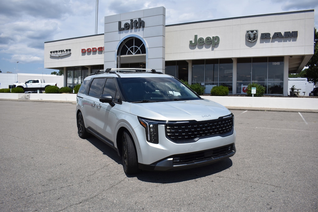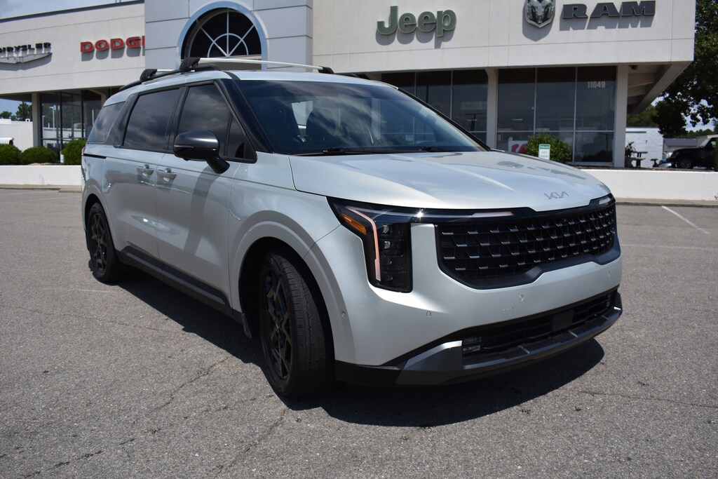 Clean CARFAX. CARFAX One-Owner. Ivory Silver 2025 Kia Carnival SX Prestige FWD 8-Speed Automatic V6 12 Speakers, 2nd Row Laminated Windows, 3.51 Axle Ratio, 3rd row seats: split-bench, 4-Wheel Disc Brakes, ABS brakes, Air Conditioning, Alloy wheels, AM/FM radio: SiriusXM, Ambient Lighting, Apple CarPlay & Android Auto, Auto High-beam Headlights, Auto-dimming Rear-View mirror, Automatic temperature control, Brake assist, Bumpers: body-color, Compass, Cross Bars, Delay-off headlights, Dual front impact airbags, Dual front side impact airbags, Electronic Stability Control, Emergency communication system, Exterior Parking Camera Rear, Four wheel independent suspension, Front anti-roll bar, Front Bucket Seats, Front Center Armrest, Front dual zone A/C, Front fog lights, Fully automatic headlights, Garage door transmitter: HomeLink, Heads-Up Display, Heated & Ventilated Front Bucket Seats, Heated door mirrors, Heated front seats, Heated steering wheel, Heated/Ventilated 2nd Row Power VIP Lounge Seats, High Glossy Interior Trim, Illuminated entry, Knee airbag, Leather Shift Knob, Leather steering wheel, Low tire pressure warning, Luxury Carpeted Floor Mats, Memory seat, Mud Guards, Navigation system: AVN 5.0 Navigation System, Occupant sensing airbag, Outside temperature display, Overhead airbag, Panic alarm, Power 2nd-Row Moonroof, Power door mirrors, Power driver seat, Power Liftgate, Power moonroof, Power passenger seat, Power steering, Power windows, Pure Leather Seat Trim, Radio: AM/FM/HD Audio System, Rain sensing wipers, Rear air conditioning, Rear anti-roll bar, Rear window defroster, Rear window wiper, Reclining 3rd row seat, Remote keyless entry, Security system, Speed control, Speed-sensing steering, Split folding rear seat, Spoiler, Steering wheel mounted audio controls, SX Prestige Seat Package, Tachometer, Telescoping steering wheel, Tilt steering wheel, Traction control, Trip computer, Turn signal indicator mirrors, Variably intermittent wipers, Ventilated front seats, Wheels: 7.5J x 19" Alloy Dark Edition.