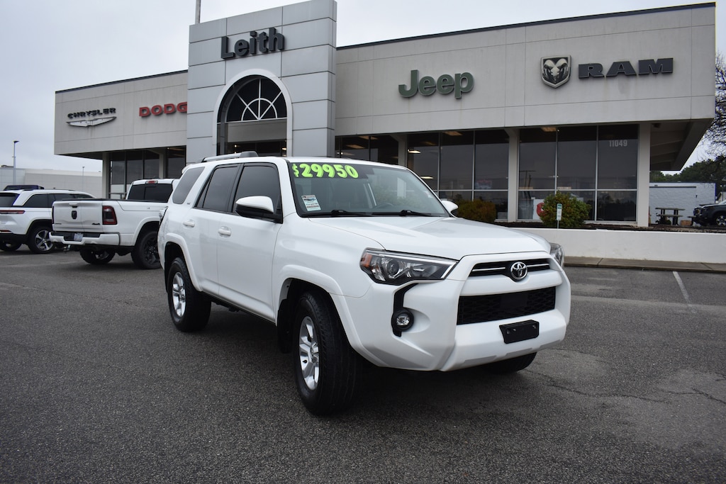 White 2022 Toyota 4Runner SR5 RWD 5-Speed with ECT 4.0L V6 DOHC 24V 17" 6-Spoke Alloy Wheels, 3.727 Axle Ratio, 4-Wheel Disc Brakes, 8 Speakers, ABS brakes, Air Conditioning, Alloy wheels, AM/FM radio: SiriusXM, Anti-whiplash front head restraints, Apple CarPlay/Android Auto, Auto High-beam Headlights, Brake assist, Bumpers: body-color, Dual front impact airbags, Dual front side impact airbags, Electronic Stability Control, Emergency communication system: Safety Connect with 1-year trial, Exterior Parking Camera Rear, Fabric Seat Trim, Front anti-roll bar, Front fog lights, Front wheel independent suspension, Heated door mirrors, Illuminated entry, Knee airbag, Leather Shift Knob, Leather steering wheel, Low tire pressure warning, Occupant sensing airbag, Outside temperature display, Overhead airbag, Panic alarm, Power door mirrors, Power driver seat, Power steering, Power windows, Radio: Audio, Rear anti-roll bar, Rear window defroster, Rear window wiper, Remote keyless entry, Roof rack: rails only, Security system, Speed control, Speed-sensing steering, Split folding rear seat, Spoiler, Steering wheel mounted audio controls, Tachometer, Telescoping steering wheel, Tilt steering wheel, Traction control, Trip computer, Variably intermittent wipers.