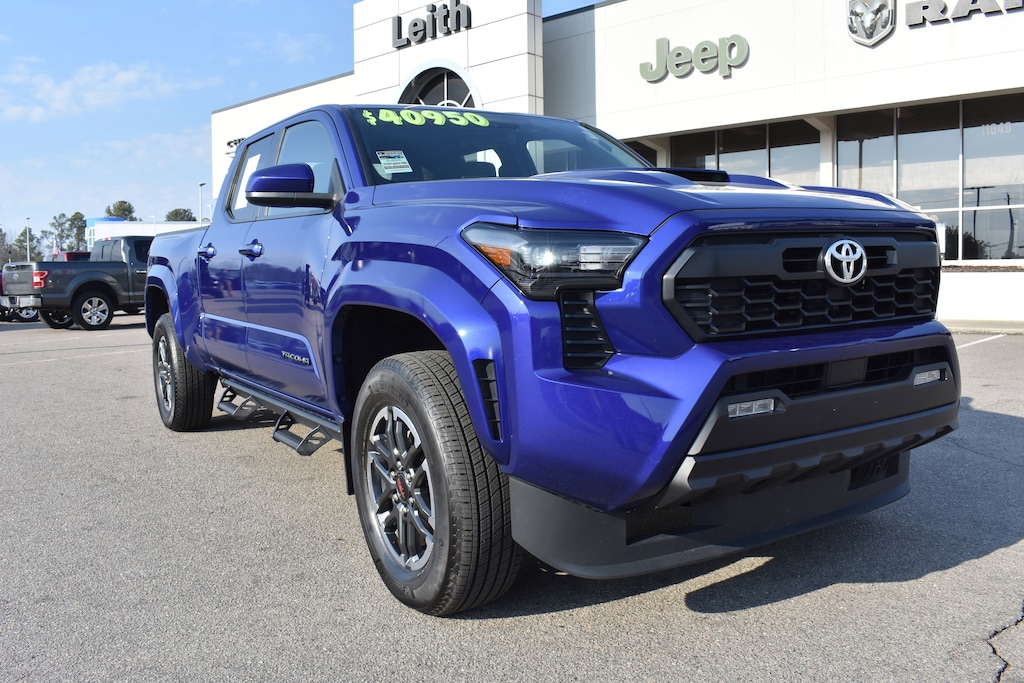 CARFAX One-Owner. Blue Crush Metallic 2024 Toyota Tacoma TRD Sport 4WD 8-Speed Automatic 2.4L 4-Cylinder 4-Wheel Disc Brakes, 6 Speakers, ABS brakes, Air Conditioning, Alloy wheels, AM/FM radio: SiriusXM, Anti-whiplash front head restraints, Apple CarPlay/Android Auto, Auto High-beam Headlights, Auto-dimming Rear-View mirror, Automatic temperature control, Brake assist, Bumpers: body-color, Dual front impact airbags, Dual front side impact airbags, Electronic Stability Control, Emergency communication system: Safety Connect (1-year trial), Exterior Parking Camera Rear, Fabric Seat Trim (FE), Four wheel independent suspension, Front anti-roll bar, Front Bucket Seats, Front fog lights, Fully automatic headlights, Heated door mirrors, Heated Front Seats, Illuminated entry, Knee airbag, Leather Shift Knob, Leather steering wheel, Low tire pressure warning, Occupant sensing airbag, Outside temperature display, Overhead airbag, Panic alarm, Power door mirrors, Power steering, Power windows, Radio: 14" Toyota Audio Multimedia (EE), Radio: 8" Toyota Audio Multimedia, Rear step bumper, Rear window defroster, Remote keyless entry, Security system, Speed control, Speed-sensing steering, Split folding rear seat, Steering wheel mounted audio controls, Tachometer, Telescoping steering wheel, Tilt steering wheel, Traction control, Trip computer, Turn signal indicator mirrors, Variably intermittent wipers, Wheels: 18" TRD Sport Alloy.