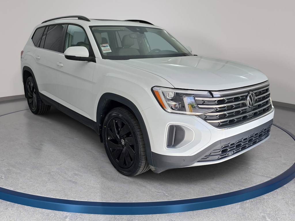 Pure White 2024 Volkswagen Atlas 2.0T SE w/Technology AWD 8-Speed Automatic with Tiptronic 2.0L TSI 3rd row seats: split-bench, Adventure Package (Bumperdillo Black), AM/FM radio: SiriusXM with 360L, Base Carrier Bars Roof Rack (Set of 2), Black Bumperdillo Rear Bumper Protection Plate, Exterior Parking Camera Rear, Fully automatic headlights, Heated door mirrors, Heated steering wheel, Heated/Actively Ventilated Front Bucket Seats, Luggage Net, Perforated V-Tex Leatherette Seating Surfaces, Power driver seat, Power Liftgate, Rain sensing wipers, Wheel Splash Guards (Set of 4), Wheels: 20" 2-Tone Machined Alloy.