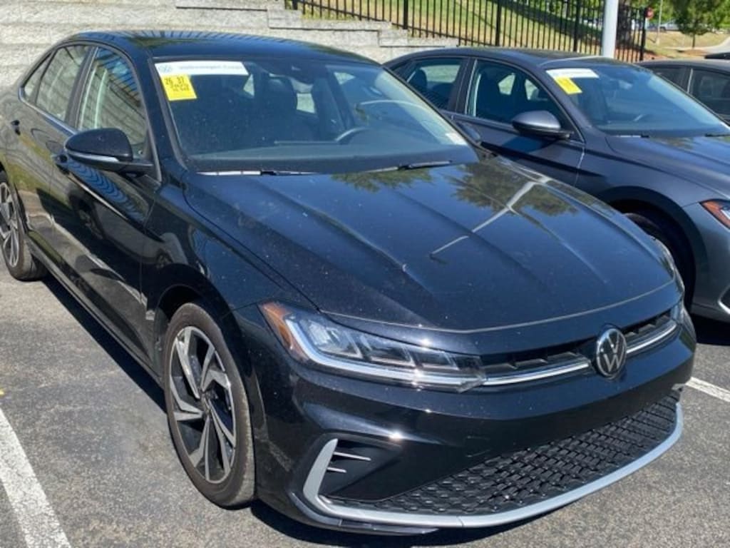 Deep Black Pearl 2025 Volkswagen Jetta 1.5T SEL FWD 8-Speed Automatic with Tiptronic 1.5L I-4 DI DOHC Turbocharged Grigio/Titan Black w/Contrast Stitching w/Vienna Leather Seat Trim, Active Blind Spot Monitor, Auto High-beam Headlights, Automatic temperature control, Brake assist, Electronic Stability Control, Exterior Parking Camera Rear, Front dual zone A/C, Fully automatic headlights, Heated & Actively Ventilated Front Seats, Heated front seats, Heated rear seats, Heated steering wheel, Memory seat, Power driver seat, Power moonroof: Panoramic, Radio: MIB3 Discover Media w/8" Touchscreen Nav, Rain sensing wipers, Remote keyless entry, Speed-sensing steering, Split folding rear seat, Steering wheel mounted audio controls, Traction control, Ventilated front seats, Vienna Leather Seat Trim, Wheels: 18" 2-Tone Machined Alloy.